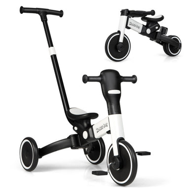 4-in-1 Kids Tricycle with Adjustable Parent Push Handle and Detachable Pedals-White