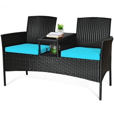 Patio Rattan Conversation Set Seat Sofa-Turquoise