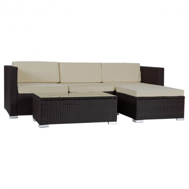 5 pcs Patio Wicker Rattan Furniture Set w/Brown Cushion