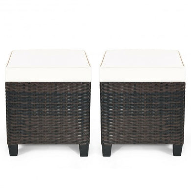 2PCS Patio Rattan Ottoman Cushioned Seat-Beige
