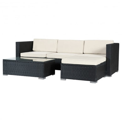 5 pcs Patio Furniture Rattan Wicker Table Shelf Garden Sofa with Cushion