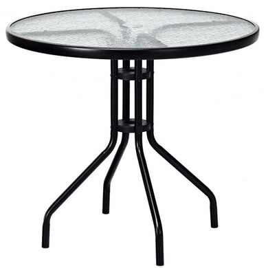 32" Outdoor Patio Round Tempered Glass Top Table with Umbrella Hole