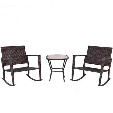 3-Pc Rattan Rocking Chair and Coffee Table Furniture Set-Brown