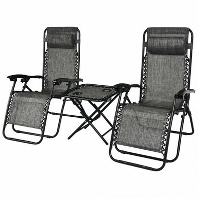 3 pcs Folding Portable Zero Gravity Reclining Lounge Chairs Table-Gray