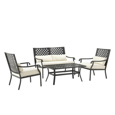Alistair 4Pc Outdoor Metal Conversation Set Creme/Matte Black - Loveseat, Coffee Table, & 2 Armchairs