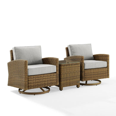Bradenton 3Pc Outdoor Wicker Swivel Rocker Chair Set Gray/Weathered Brown - Side Table & 2 Swivel Rockers