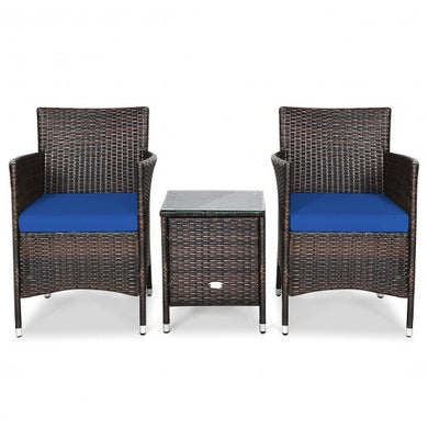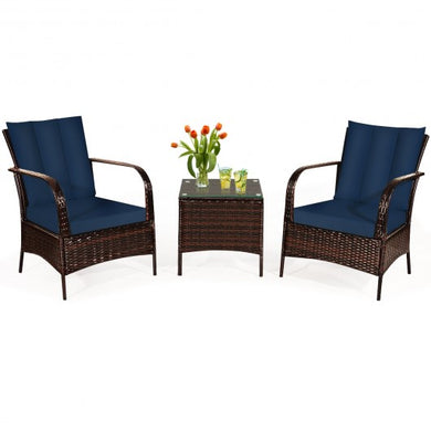 3 Pcs Patio Furniture Set Outdoor Wicker Rattan Set-Navy