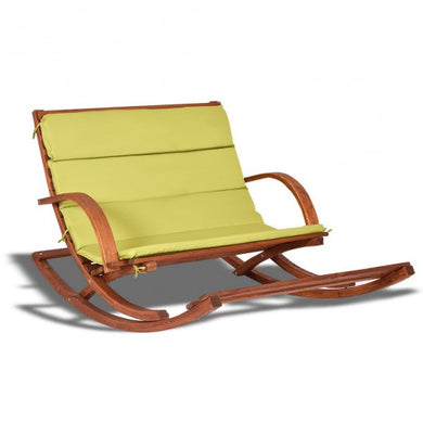 Outdoor 2 Persons Rocking Wooden Lounge Chair with Cushion
