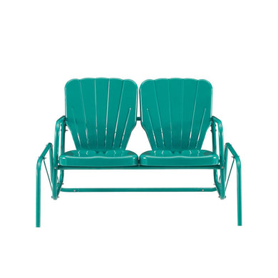 Ridgeland Outdoor Metal Loveseat Glider Turquoise Gloss