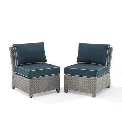 Bradenton 2Pc Outdoor Wicker Chair Set Navy/Gray - 2 Armless Chairs