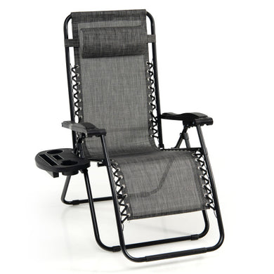 Outdoor Folding Zero Gravity Reclining Lounge Chair with Utility Tray-Gray