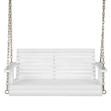 2-Person Wooden Porch Swing with Hanging Chains for Garden Yard-White