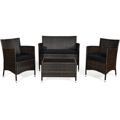 4 Pieces Rattan Sofa Set with Glass Table and Comfortable Wicker for Outdoor Patio-Black