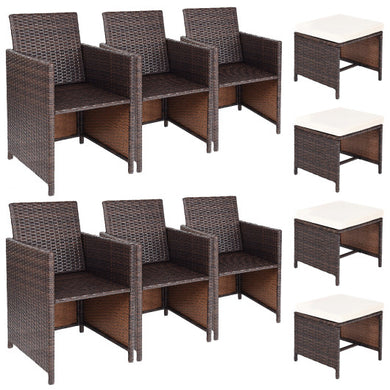 2 Pieces Patio Ottoman with Removable Cushions-Brown