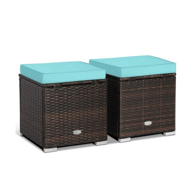2 Pieces Patio Ottoman with Removable Cushions-Turquoise