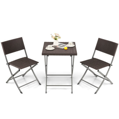 3 Pieces Patio Bistro Set with Folding Wicker Chairs and Table-Brown