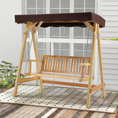 Patio Wooden Swing Bench Chair with Adjustable Canopy for 2 Persons