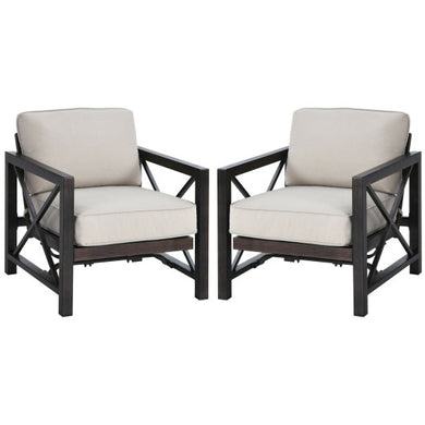 2 Pieces Patio Rocking Chairs Sofa With 6 Inch Thick Cushions Armrest-Beige