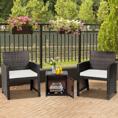 3 Pieces Patio Wicker Furniture Set with Storage Table and Protective Cover-Off White