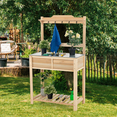 Outdoor Garden Potting Bench Table with Metal Top Open Shelf