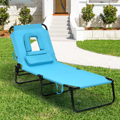 Outdoor Folding Chaise Beach Pool Patio Lounge Chair Bed with Adjustable Back and Hole-Turquoise