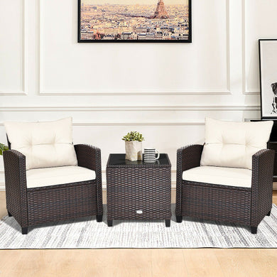 3 Pcs Patio Rattan Furniture Set Cushioned Conversation Set Coffee Table