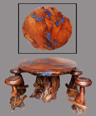 One of a Kind Teak Obsidian Bar Table Set of 5
