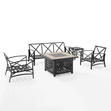 Kaplan 5Pc Outdoor Metal Sofa Set W/Fire Table Mist/Oil Rubbed Bronze - Sofa, Side Table, Tucson Fire Table, & 2 Chairs