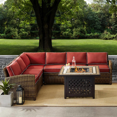 Bradenton 5Pc Outdoor Wicker Sectional Set Weathered Brown/Sangria