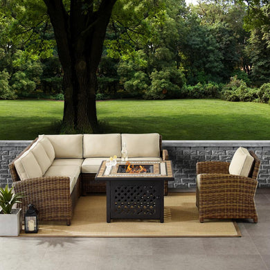 Bradenton 5Pc Outdoor Wicker Sectional Set, W/Fire Table