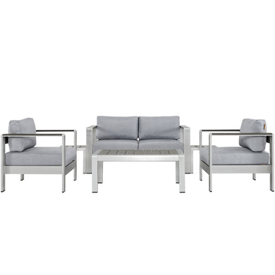 Shore 5 Piece Outdoor Patio Aluminum Sectional Sofa Set by Modway