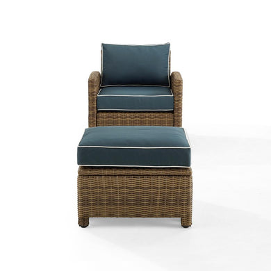 Bradenton 2Pc Outdoor Wicker Armchair Set Navy/ Weathered Brown - Armchair & Ottoman