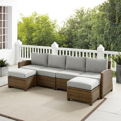 Bradenton 4Pc Outdoor Wicker Sectional Set Gray /Weathered Brown - Left Loveseat, Right Loveseat, & 2 Ottomans