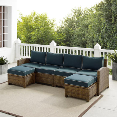 Bradenton 5Pc Outdoor Wicker Sectional Set Navy /Weathered Brown - Left Loveseat, Right Loveseat, Armchair, Coffee Table, & Ottoman