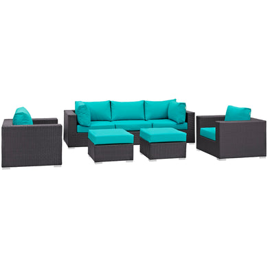 Convene 7 Piece Sectional Set in Espresso Turquoise