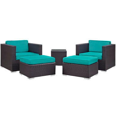Convene 5 Piece Sectional Set in Espresso Turquoise