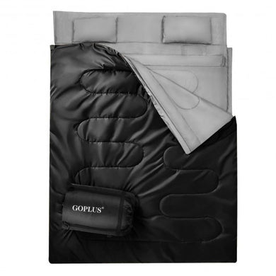 2 Person Waterproof Sleeping Bag with 2 Pillows-Black