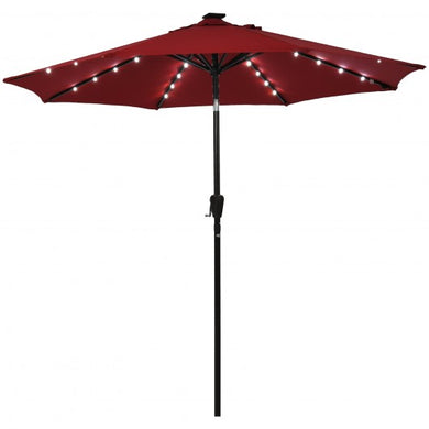 9 Ft and 32 LED Lighted Solar Patio Market Umbrella Shelter with Tilt and Crank-Burgundy