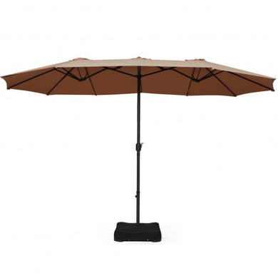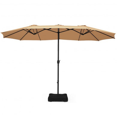 15 Foot Extra Large Patio Double Sided Umbrella with Crank and Base-Tan