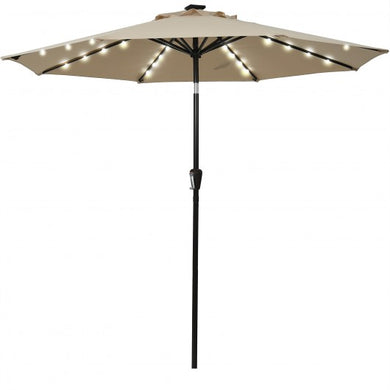 9 Ft and 32 LED Lighted Solar Patio Market Umbrella Shelter with Tilt and Crank-Tan
