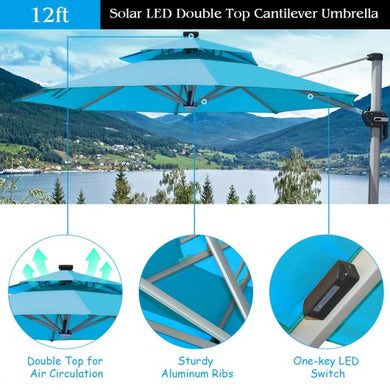 12ft 360° Rotation Aluminum Solar LED Patio Cantilever Umbrella-Green