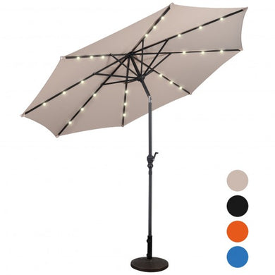 9' Solar LED Lighted Patio Market Umbrella Tilt Adjustment Crank Lift -Beige