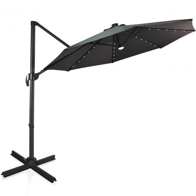 10FT 360 Rotation Solar Powered LED Patio Offset Umbrella-Tan