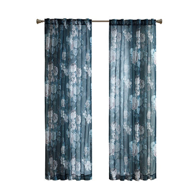 Madison Park Simone 100% Polyester Printed Floral Rod Pocket And Back Tab Voile Sheer- Navy MP40-6623 By Olliix