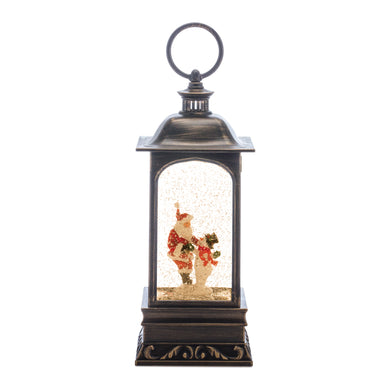 LED Snow Globe Lantern with Santa and Snowman 10.5"H