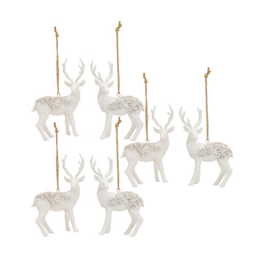 Modern White Deer Ornament with Raised Pine Design (Set of 6)