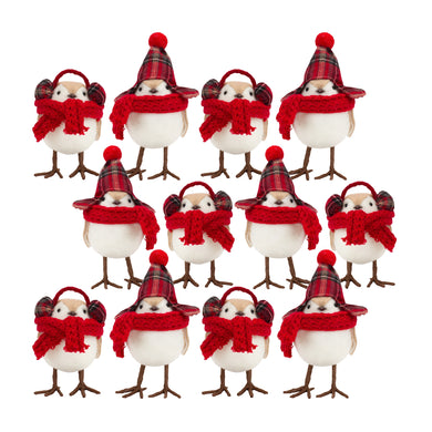 Plush Winter Bird Shelf Sitter with Scarf and Ear Muffs (Set of 12)