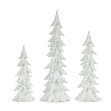 Carved Stone Holiday Tree DŽcor with Glistening White Finish (Set of 3)