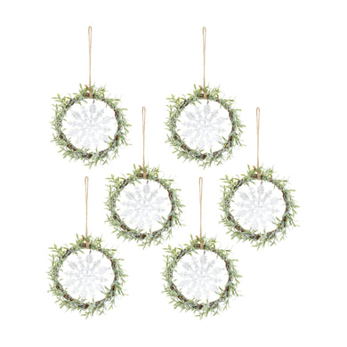 Frosted Winter Mini Leaf Wreath with Snowflake Ornament (Set of 6)