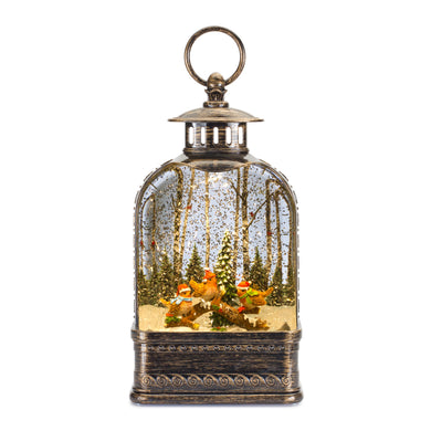 LED Snow Globe Lantern with Winter Bird Scene 11"H
